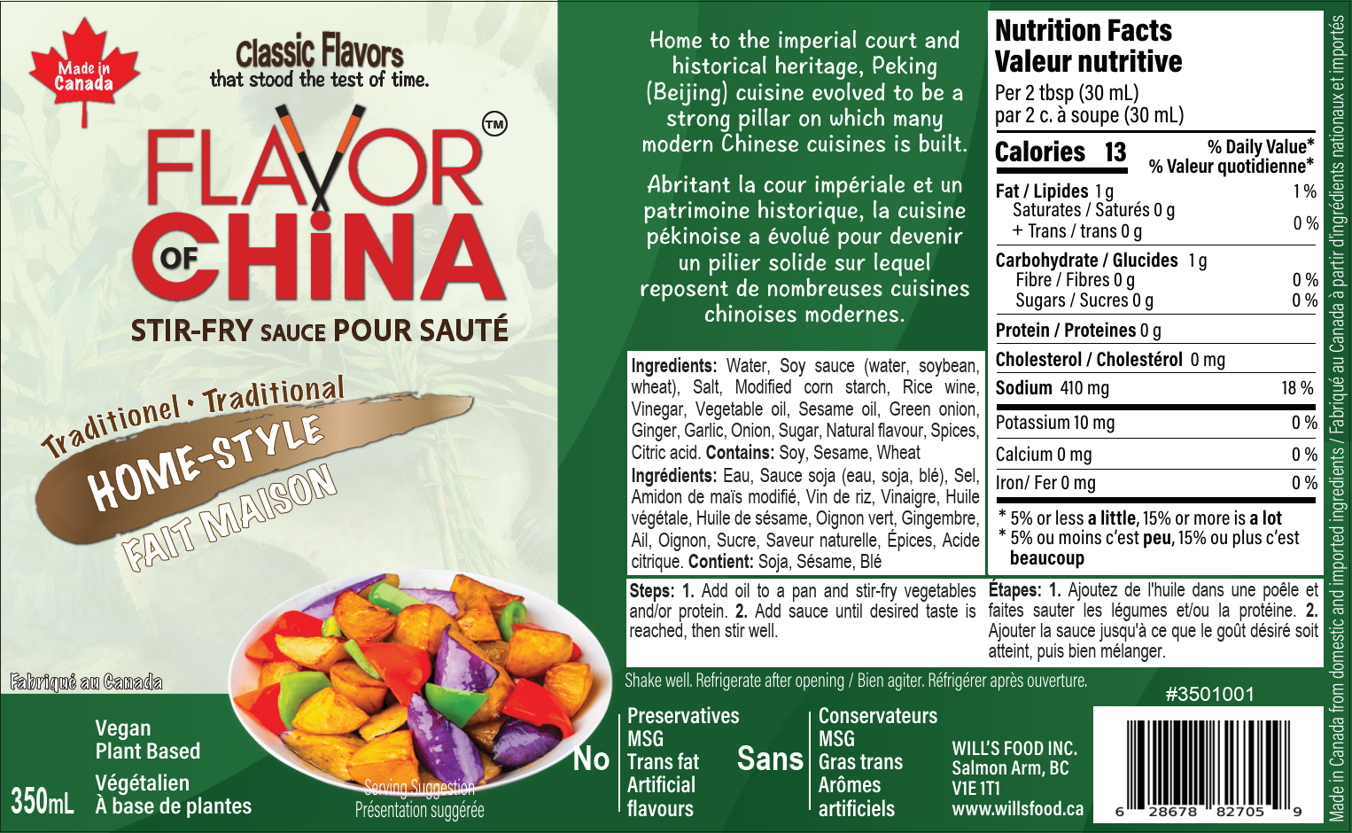 Steps: 1. Add oil to a pan and stir-fry vegetables and/or protein. 2. Add sauce until desired taste is reached, then stir well.