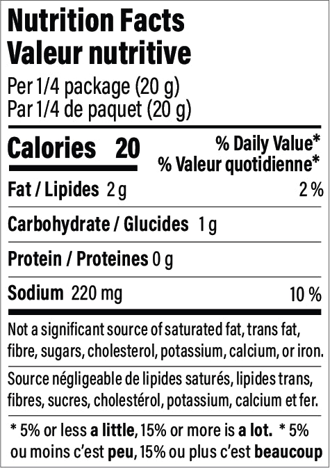 Vegetable oil (palm oil, Non-GMO soy lecithin), Caramelized sugar, Non-GMO soy sauce powder (non-GMO soybean, salt), Salt, Natural flavors, Spices, Citric acid